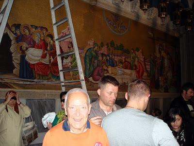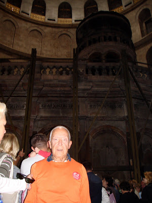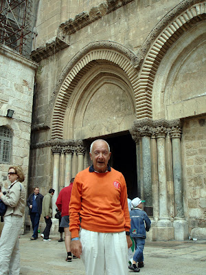 É uma igreja monumental, absolutamente fabulosa, onde visitámos o local da crucificação e o sepulcro de Cristo. À volta do Santo Sepulcro estão dispostos em círculo seis locais de culto, destinados a seis diversos rituais cristãos, tais como o católico, o abissínio, o copta, o assírio, etc.A Igreja do Santo Sepulcro foi mandada construir pelo imperador romano Constantino e por sua mãe Santa Helena, no ano de 335. Como se sabe, Constantino foi o primeiro imperador a autorizar a prática da religião cristã no império romano. A primitiva igreja, com o nome de Igreja da Ressurreição, esteve de pé durante trezentos anos, tendo sido destruída pelo rei persa Cosroes II. Mas foi reconstruída por Godofredo de Bolhão, comandante da primeira cruzada, no princípio do ano mil. E foi esse edifício, reconstruído pelos cruzados, que nós visitámos.Em Jerusalém visitámos o bairro cristão, o bairro muçulmano, o bairro arménio e o bairro judeu, onde nos demorámos algum tempo no célebre Muro das Lamentações, que é a única parte que resta do templo que Jesus conheceu e frequentou. É um local de culto sagrado para os judeus, onde os crentes da religião judaica fazem as suas orações.