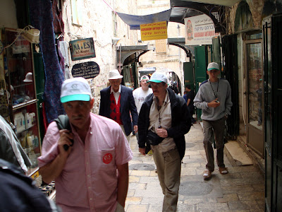 Começámos o nosso percurso da via dolorosa pelo sítio do tribunal de Pôncio Pilatos onde Cristo foi condenado à morte e percorremos a pé todas as catorze estações da cruz, tais como o colocar a cruz no ombro, o encontro de Jesus com a Sua mãe, o episódio de Verónica a secar com um pano o suor que escorria do rosto de Jesus, etc., etc. Os caminhos por onde Cristo passou são hoje ruas estreitas cheias de estabelecimentos comerciais, mas essas ruas não perderam a magia dos antigos caminhos que o filho de José e de Maria percorreu com a cruz. Chegámos enfim ao cimo do Monte Gólgota, ao local onde Cristo foi crucificado, que se encontra dentro da Igreja do Santo Sepulcro. Com efeito, as quatro últimas estações da cruz encontram-se no interior da Igreja do Santo Sepulcro.